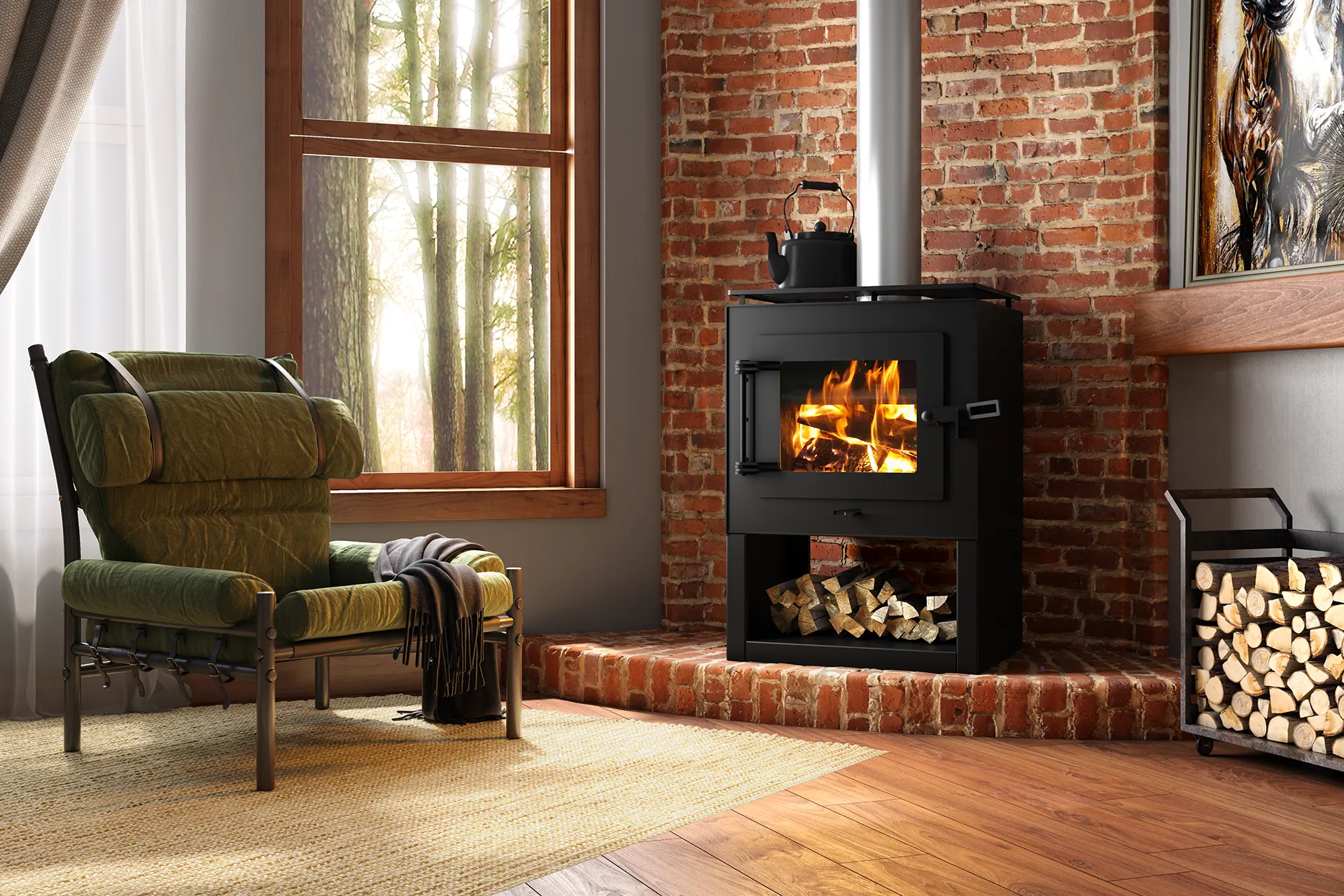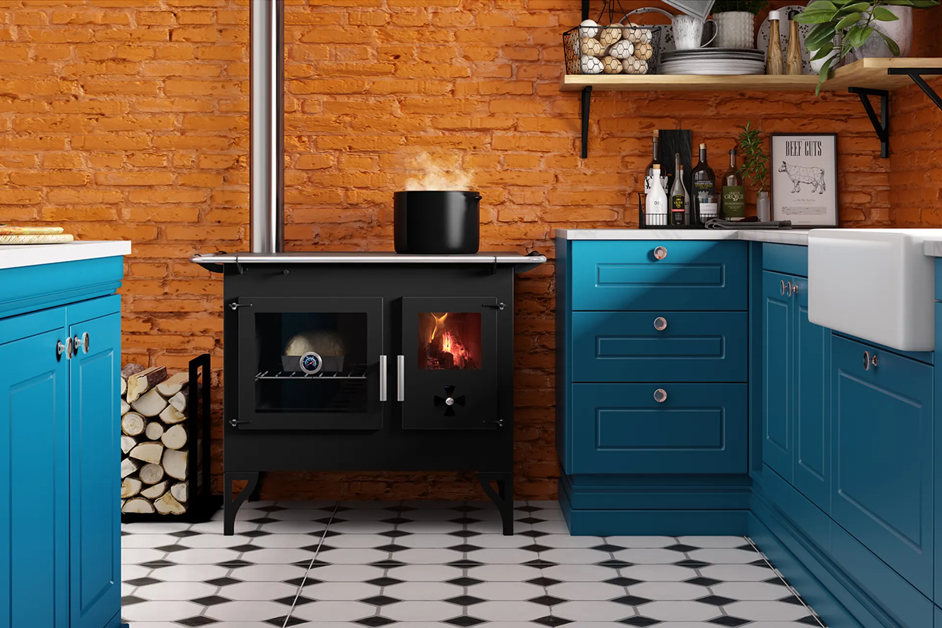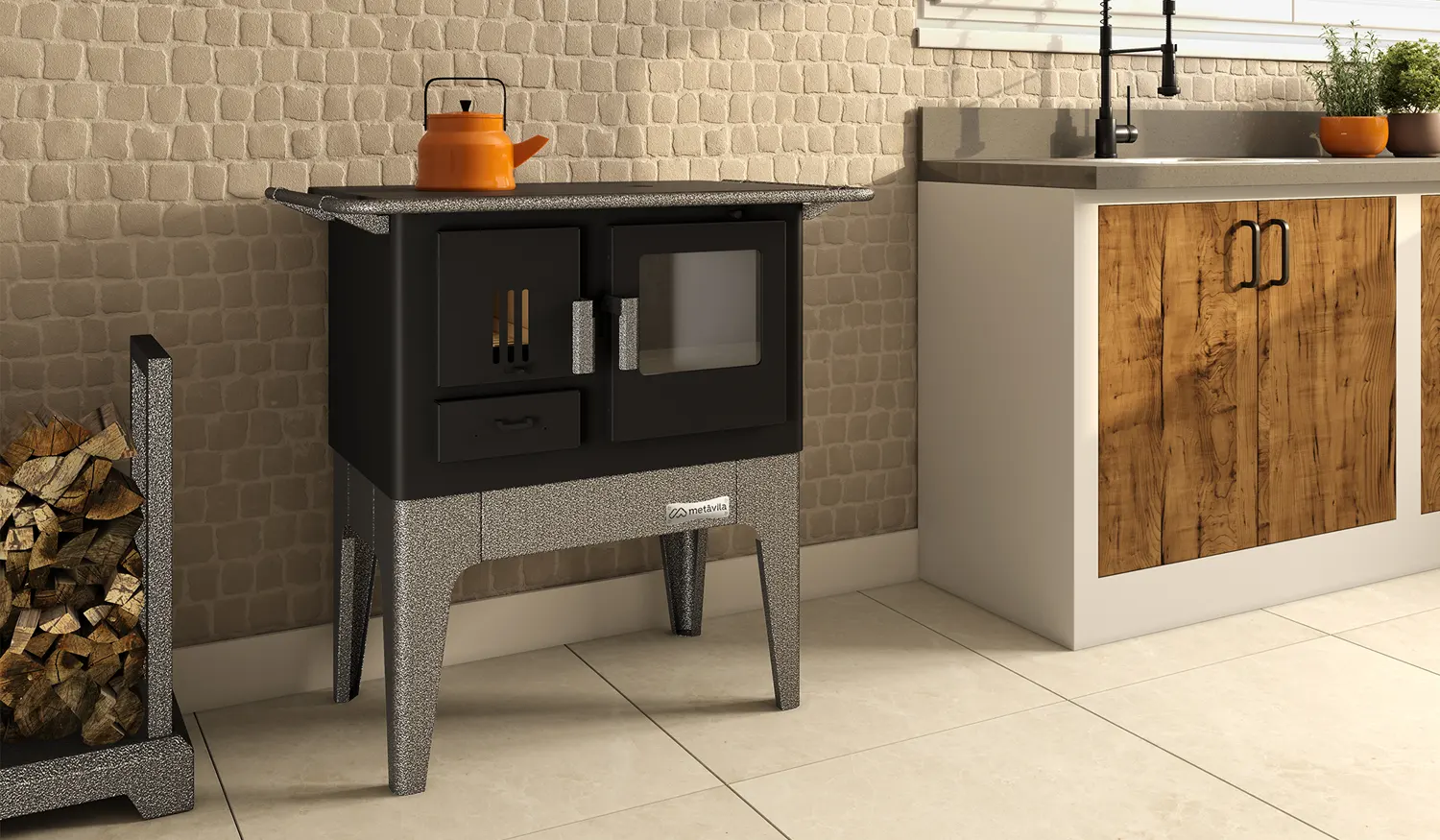 Las cocinas a leña son productos 2 en 1, ya que contemplan la misma tecnología de doble combustión que se aplica a los calefactores y además son aptas para cocinar.